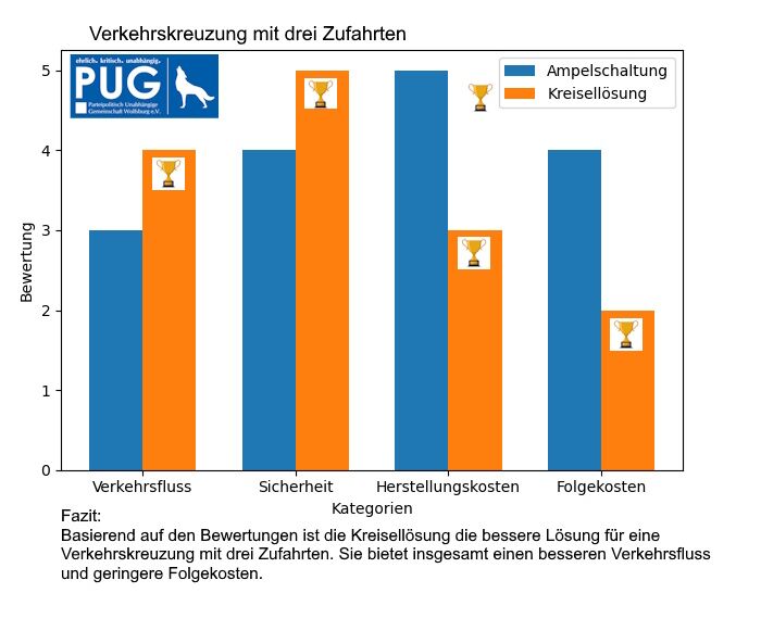 Die PUG Wolfsburg bevorzugt den Ausbau des Kreuzungsbereiches durch einen Verkehrskreisel.